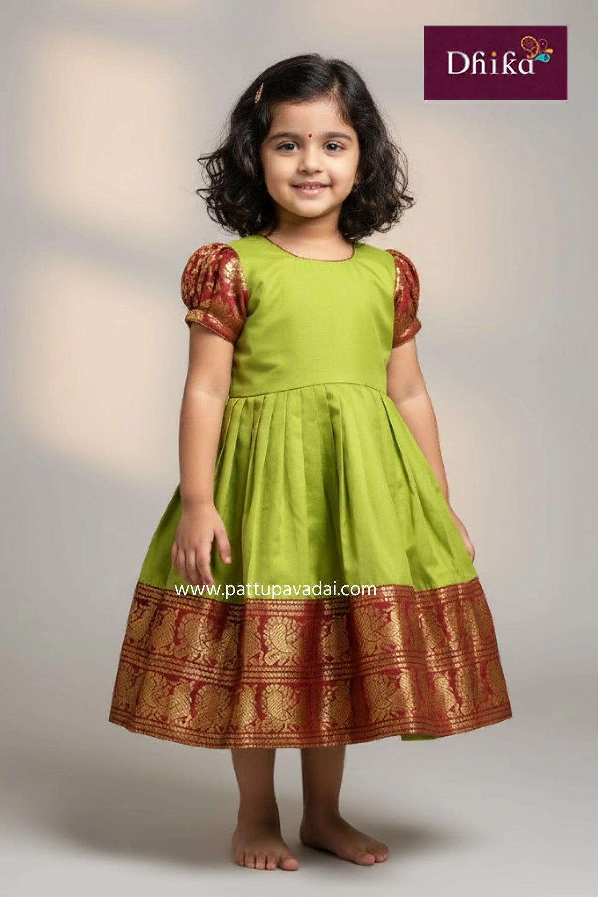 Parrot Green & Maroon Silk Cotton Frock for Girls & Kids – Stylish Party & Festive Dress