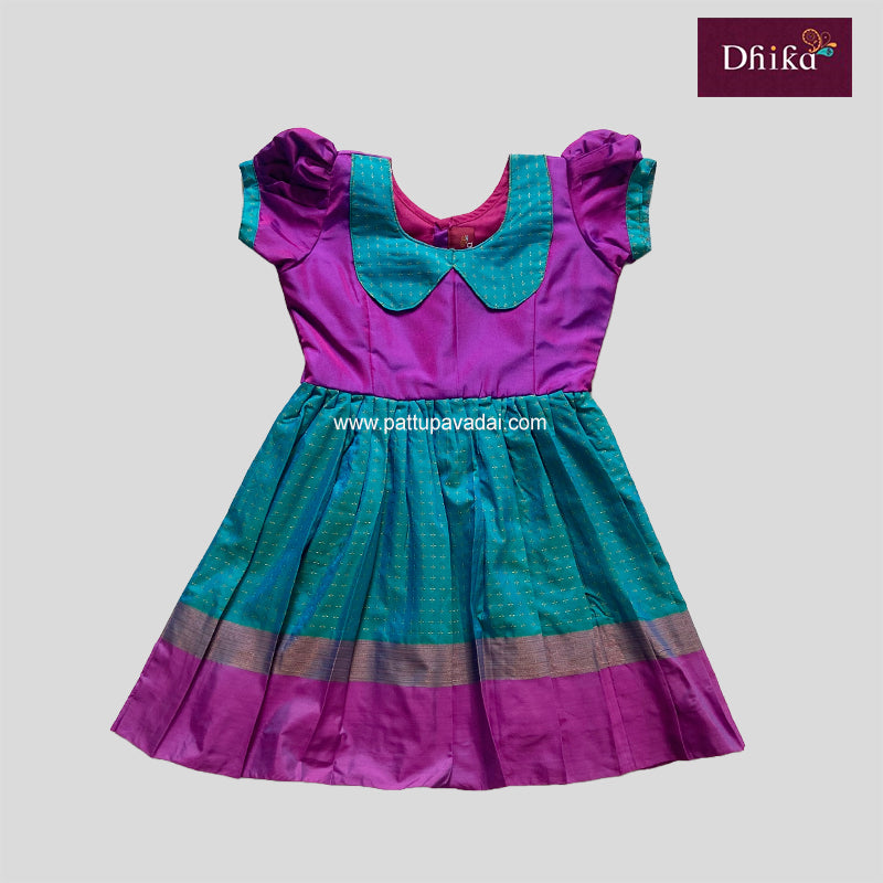 Silk Cotton Frock for Girls & Kids – Teal Blue & Lavender Party Dress