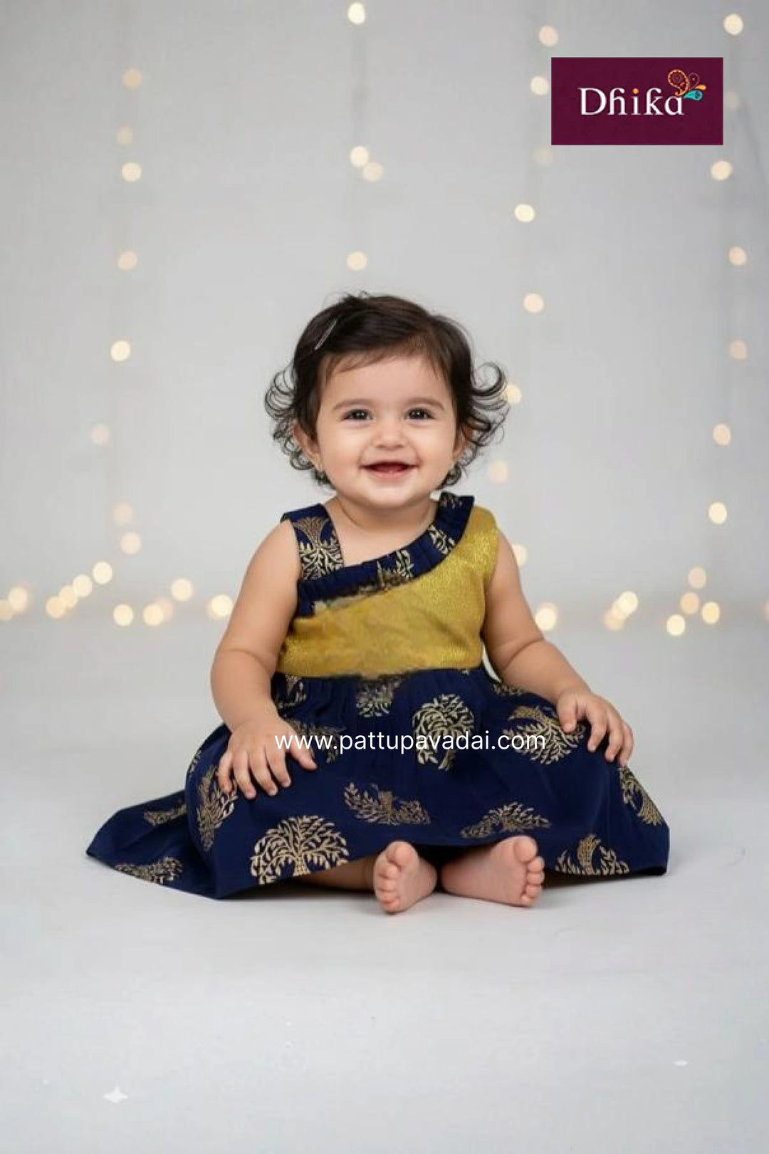 Navy Blue & Golden Cotton Frock for Girls | Kids Casual & Festive Wear
