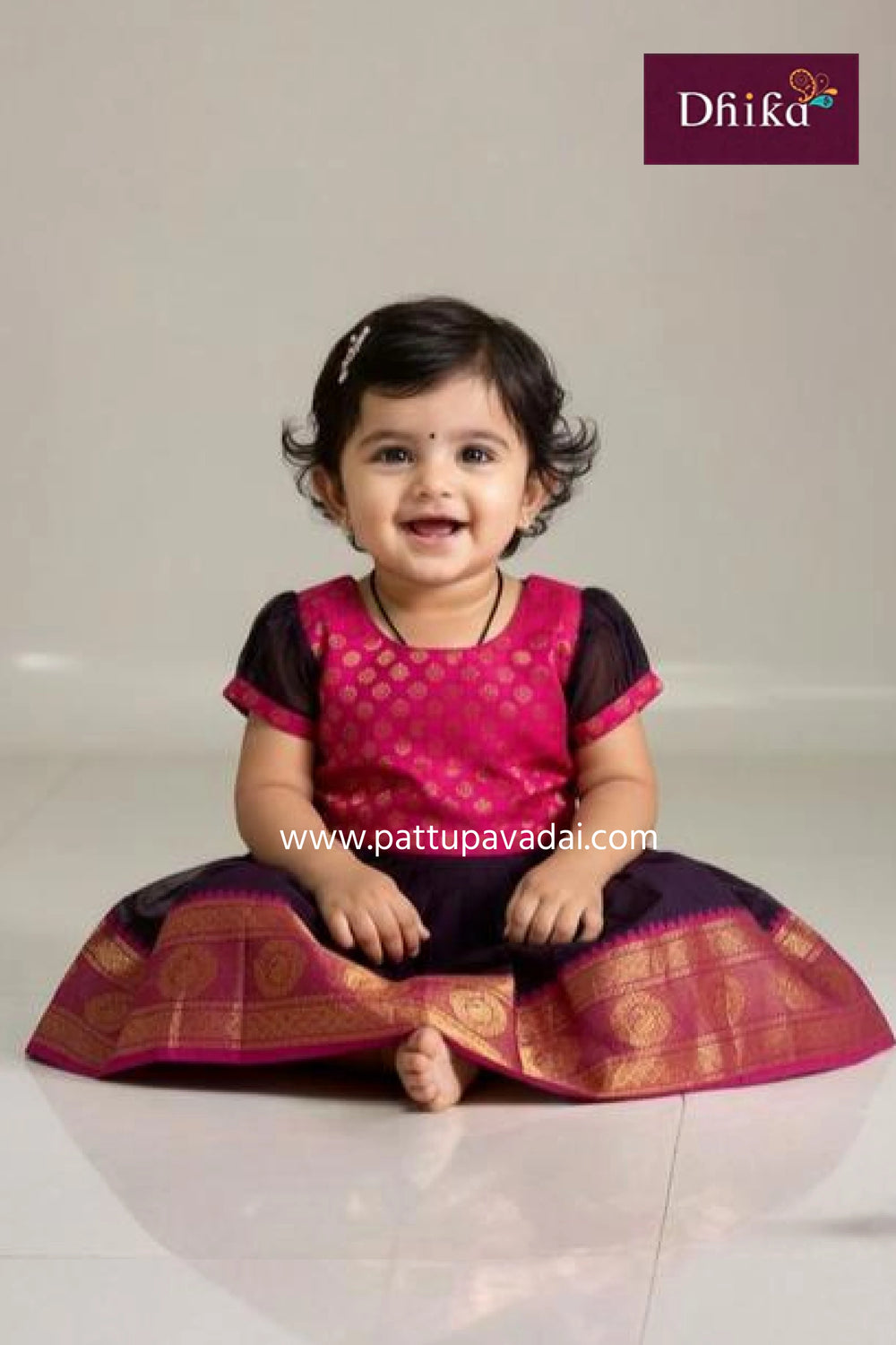 Pink & Wine Silk Cotton Frock for Girls & Kids – Stylish Party & Festive Dress