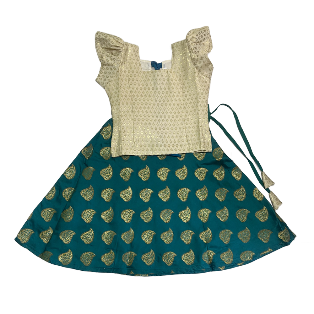Kids Sea Green and Navy Blue Skirt and Top – Traditional Cotton Occasion Wear