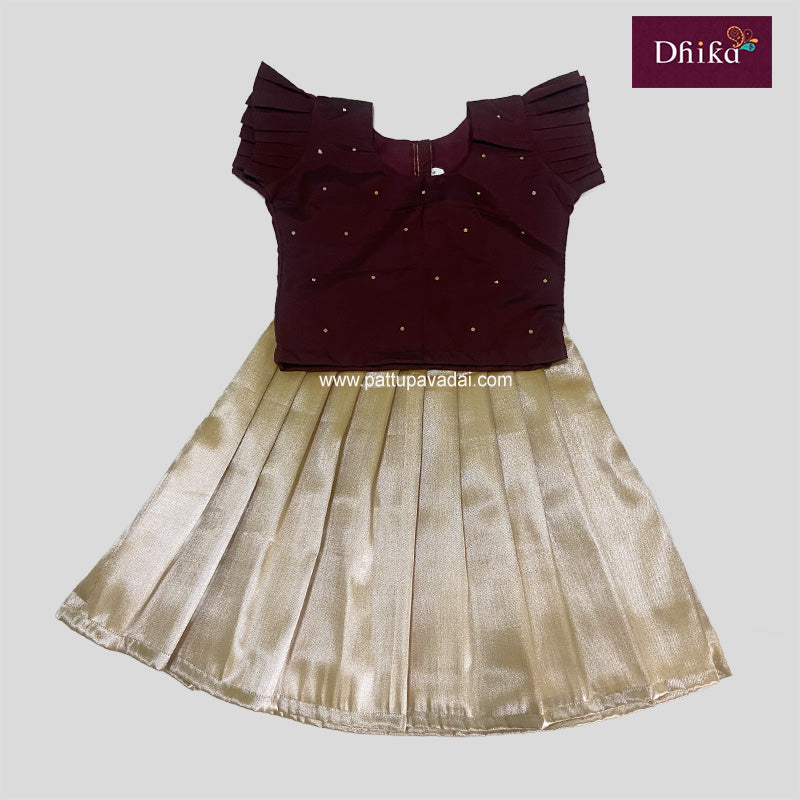 Golden Tissue Skirt with Brown Crop Top – Kids Traditional Skirt and Top Set
