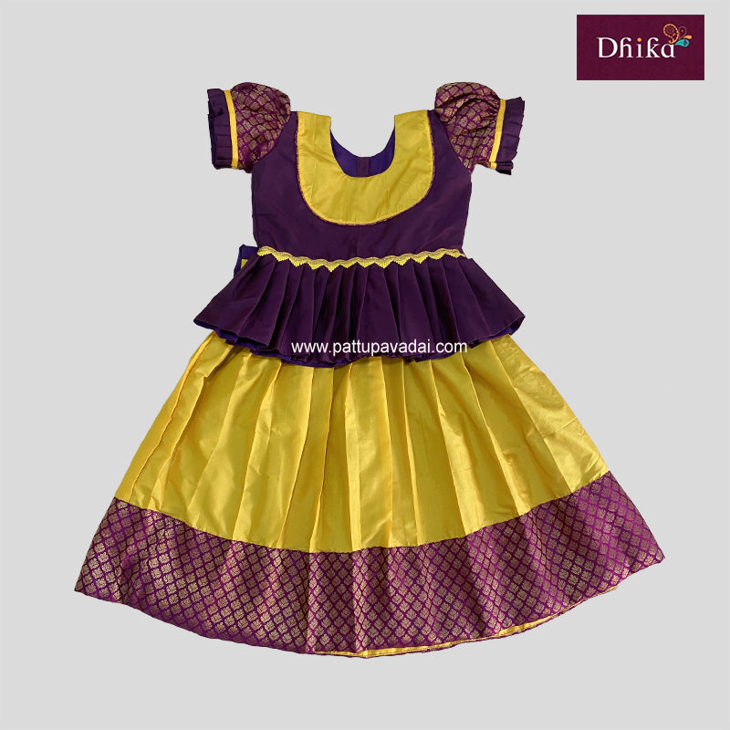 The Kids Yellow with Magenta Skirt and Top is made from lightweight, breathable fabric that feels comfortable for long hours. The yellow skirt paired with a magenta top creates a bright and traditional color contrast that suits festive days and family occasions. The skirt has a full flared fit to allow free movement, while the top is stitched for a soft, skin-friendly fit without irritation. The stitching is neat and durable, making the outfit practical for celebrations, festivals, cultural gatherings, temple visits, and family functions.