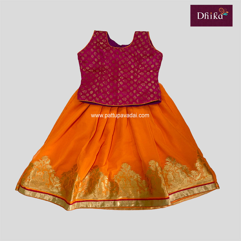 Designer Skirt Orange and Pink – Traditional Flared Skirt for Kids
