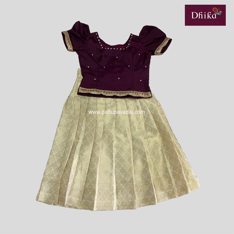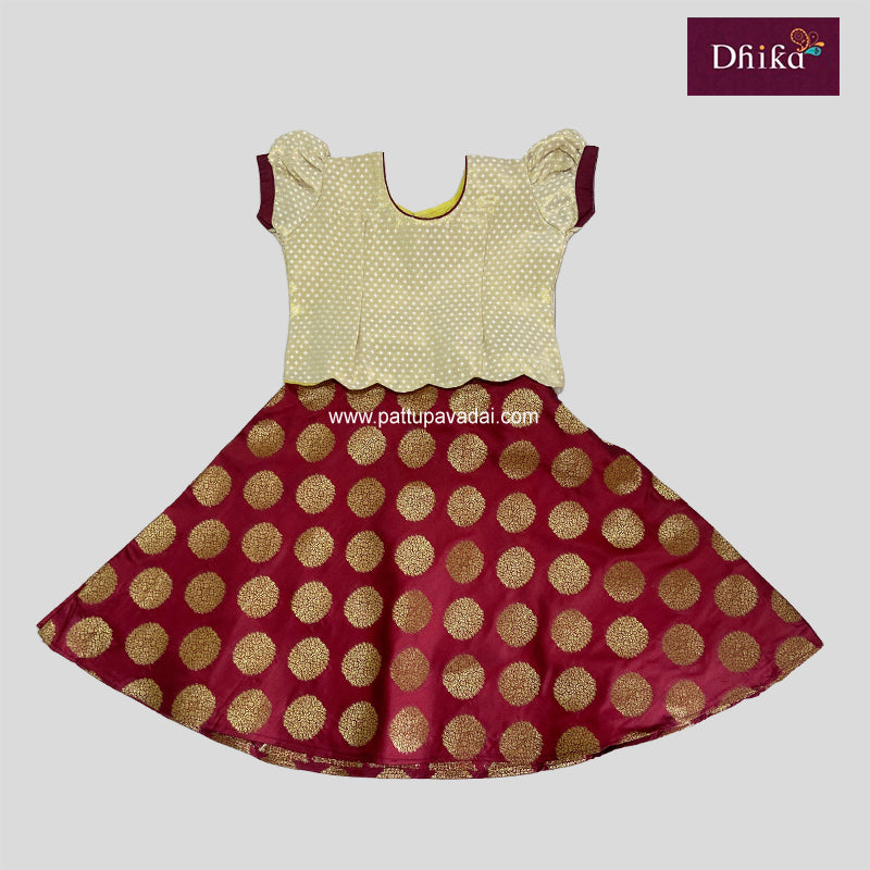 Brocade Maroon and Cream Pattu Pavadai – Traditional Silk Festive Wear for Kids