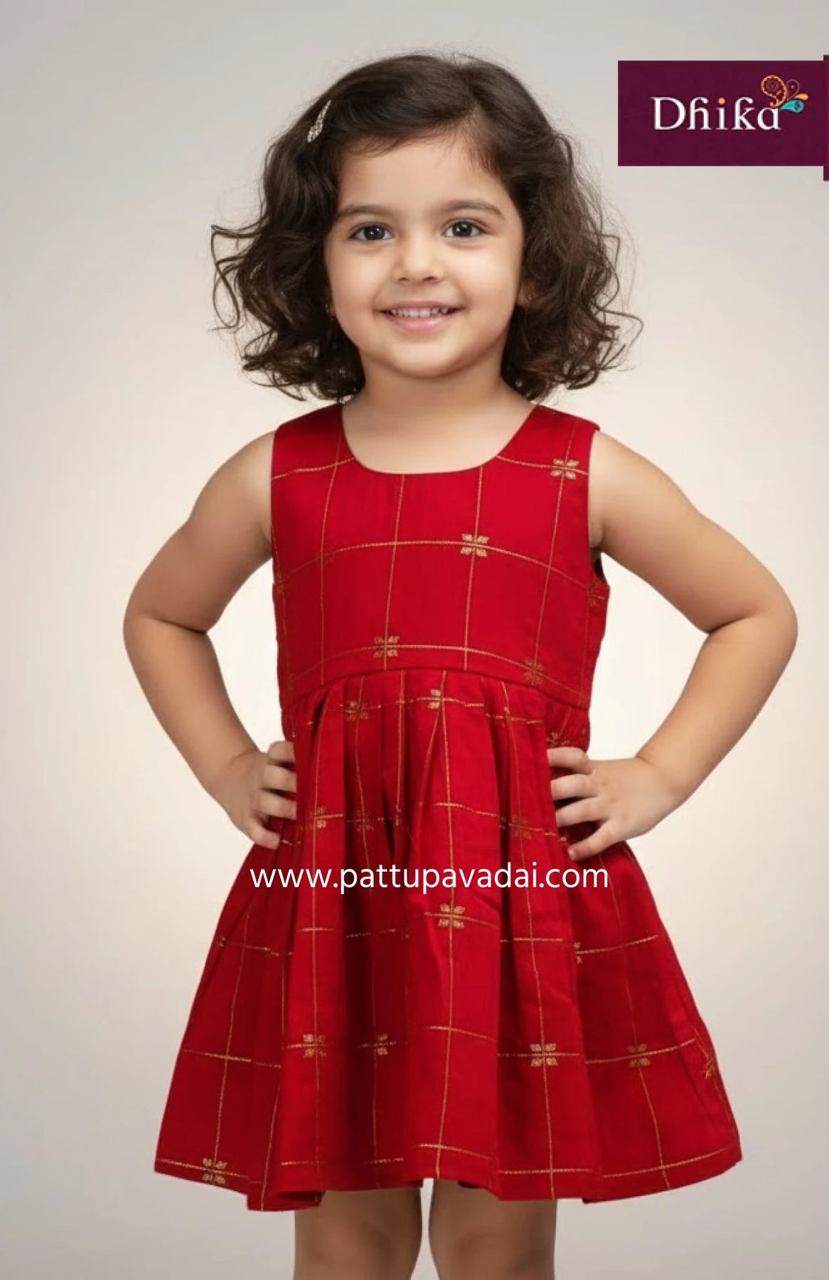 Red Sleeveless Raw Silk Frock for Girls – Traditional Festive & Party Wear Dress