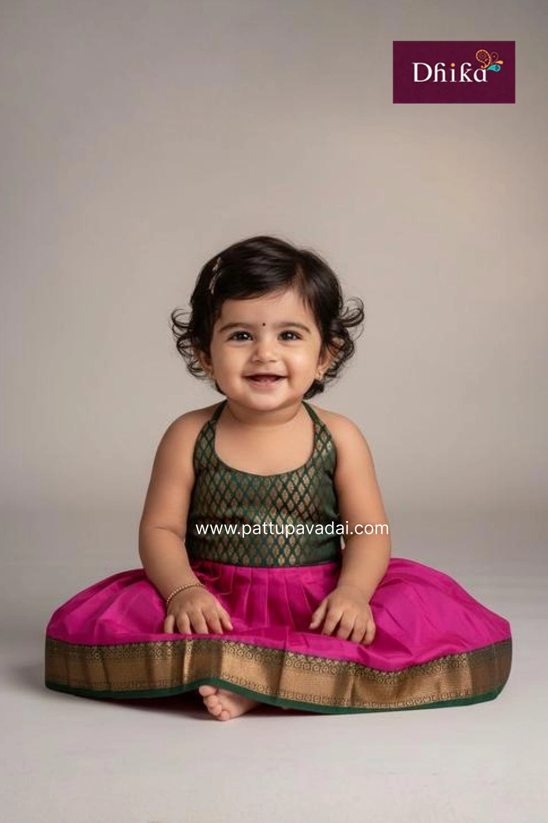 Dark Green & Magenta Silk Frock for Kids – Festive & Party Wear Dress
