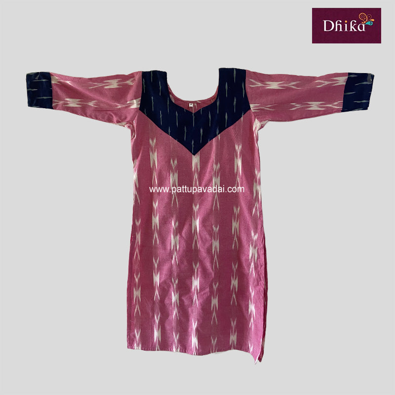 This Baby Pink Ikkat Cotton Kurti is the perfect addition to your wardrobe. Made with high-quality cotton fabric and featuring a beautiful Ikkat print, this kurti offers both comfort and style. The baby pink color adds a touch of femininity while the ikkat pattern adds a touch of traditional charm. A must-have for any fashion-forward woman.