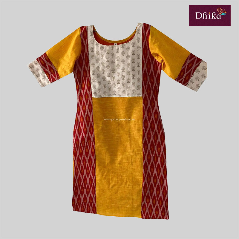 Yellow and Red Cotton Kurti