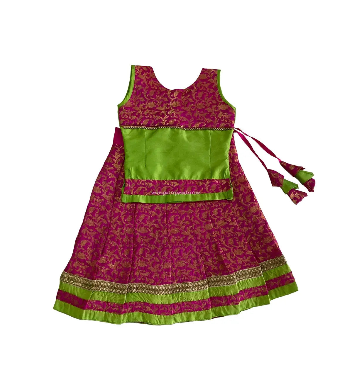 Kids Fancy Langa Pink And Parrot Green - Pattupavadai.com