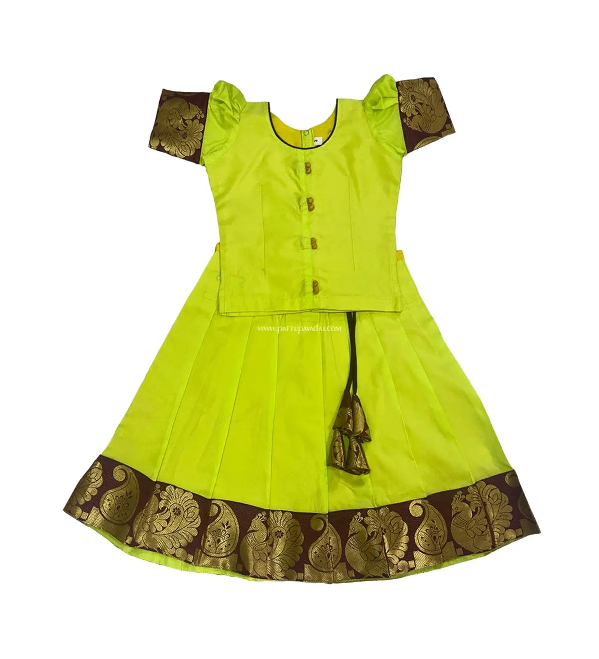 Kids Pure Cotton Pavadai Fluorescent Green – Traditional Skirt and Top Set for Girls