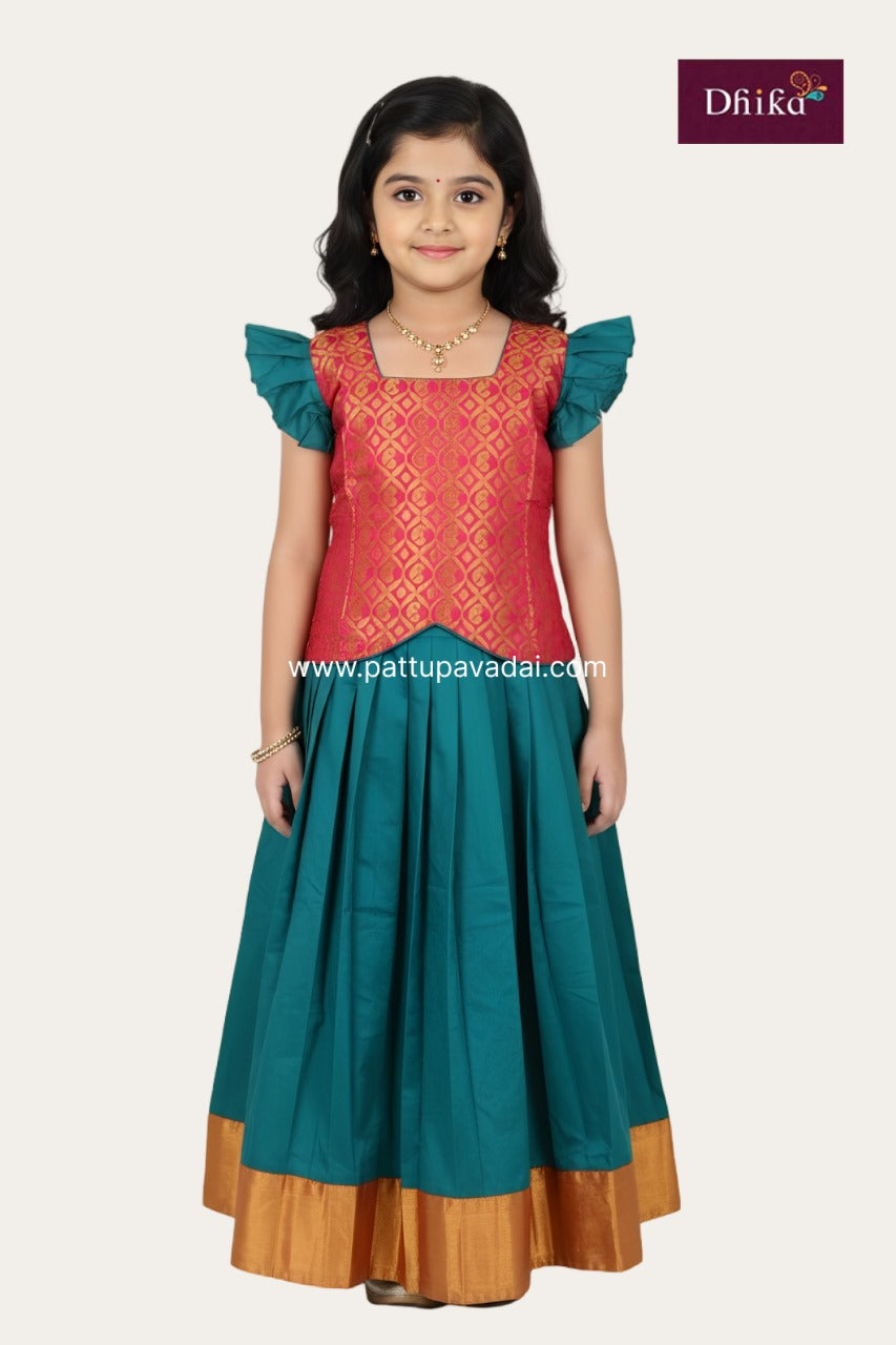 Semi Kanchi Pattu Pavadai for Girls & Kids – Blue & Pink Traditional Dress
