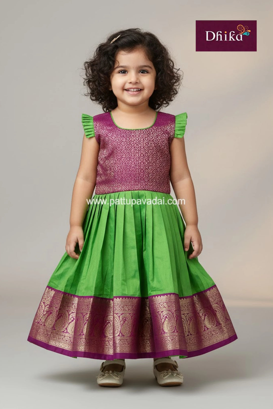 Parrot Green Pattu Frock for Girls | Kids Party Wear Dress