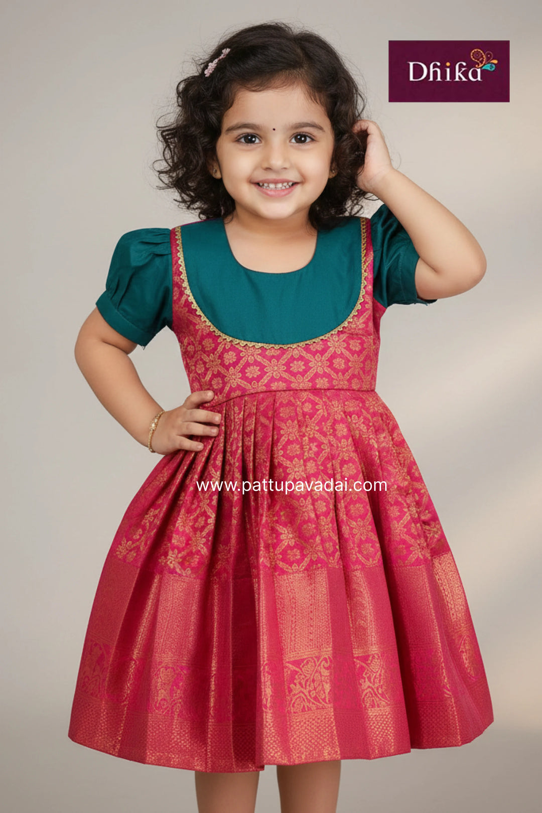Parrot Green & Pink Silk Frock for Girls | Kids Party Wear Dress | 5Y