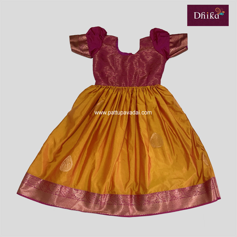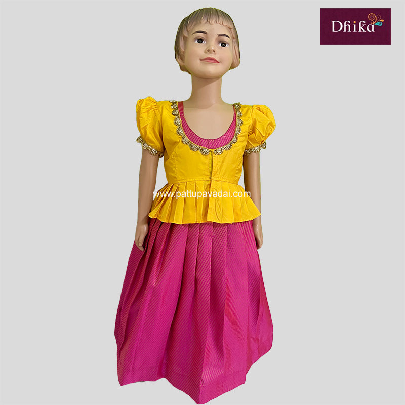 Kids Pure Silk Gown – Yellow & Pink | Traditional Pattu Gown for Girls