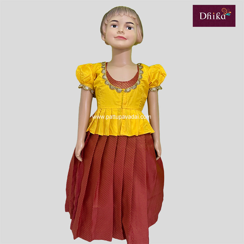 Yellow and Red Silk Long Gown – Traditional Festive Gown for Kids