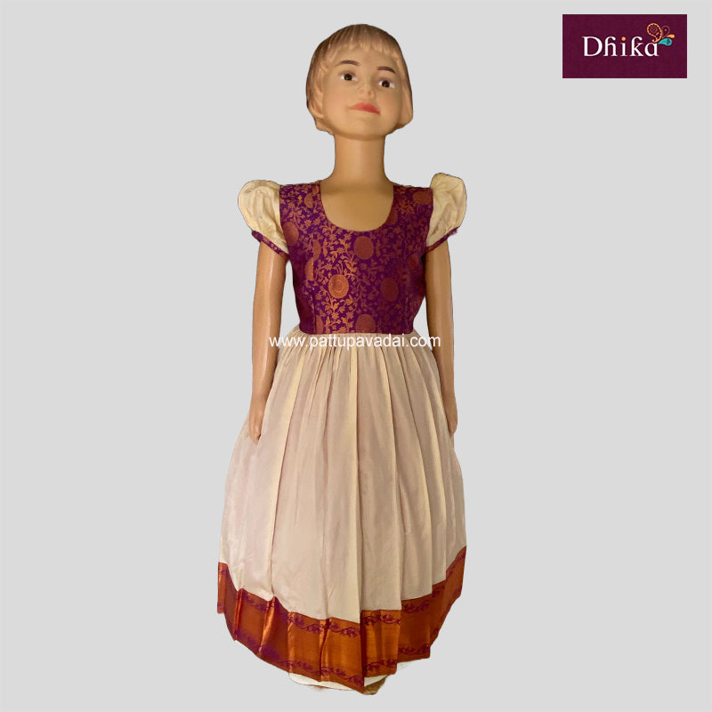 Kids Pattu Long Gown Brown and Cream – Traditional Silk Long Dress for Girls